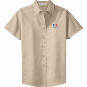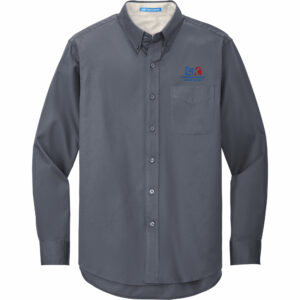- 3.4-ounce, 56/36/8 cotton/poly/spandex end-on-end (Air Blue and Gusty Grey)