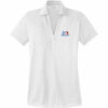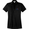 Lightweight and breathable, this moisture-wicking shirt has a pleasing drape, subtle jacquard texture and an open placket for feminine style.