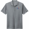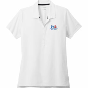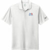 Flat knit collar and three-button placket. Rolled-forward shoulder seams, open hem sleeves and open hem. White or black pearlized buttons selected to complement the shirt color. Contrast Swoosh logo is embroidered on the left sleeve. Made of 4.3-ounce, 100% polyester Dri-FIT fabric.