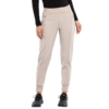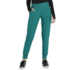 A Contemporary fit, mid rise, jogger features a rib knit elastic waistband with front angled zipper pockets, a cargo pocket with reflective tape, two back patch pockets, rib knit leg bands for adjustable length and coverstitch detail throughout. Inseam: 28 1/2″. The comfortable stretch poplin fabric and super stretchy rib knit is the perfect combo for healthcare professionals.