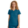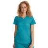 The Purple Label line by Healing Hands Scrubs was designed for performance and comfort. The easy care Poly/Rayon blend is durable while still feeling luxurious on the skin. With just the right amount of stretch, Purple Label scrubs are made to move with you through even the longest shift. This modern fit “Jane” top features a flattering Y-neck with triple needle stitching detail, 2 patch pockets and princess seaming for superior fit and style. 77% Polyester/20% Rayon/3% Spandex. Modern fit. Center back length: 24″.