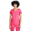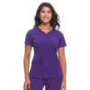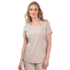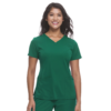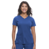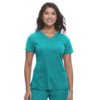 V-neck scrub top with 2 pockets and 1 media pocket. Wicks moisture quickly. Optimum mobility and comfort. Wash, dry, and wear. Won’t fade. Elegant styling. Well-balanced fit. Center back length: 26.5″.
